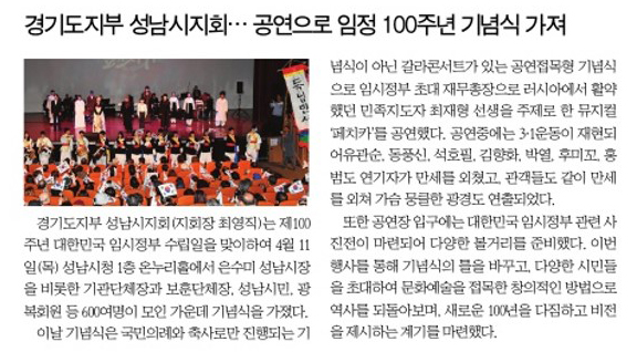 [뉴스]경기도지부 성남시지회... 공연으로 임정100주년 기념식 가져